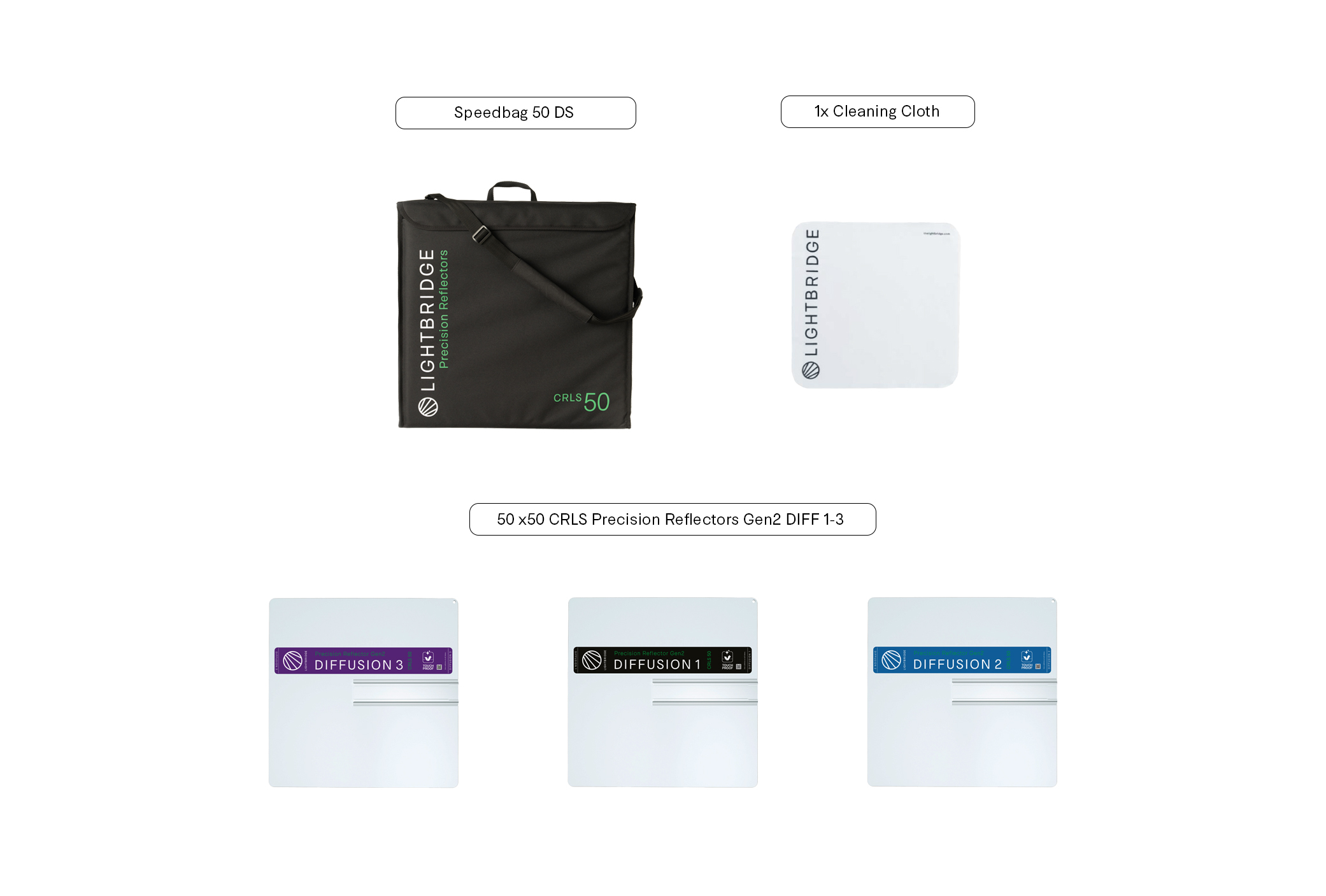 The C-Diff 50 Core DS is a easy to carry portable Speedbag containing the full range of Touchproof Precision Reflectors, offering maximum versatility and efficiency on set.